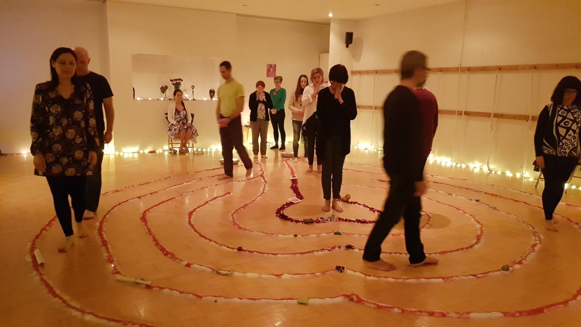 Čudovita izkušnja, ki je prevzela vsa srca udeleženk in udeležencev sobotnega dogodka Pot do srca, kjer se je odvijala tudi postavitev labirinta Pot do svetišča duše. Občutki povezanosti, sprejemanja in srčnosti so prevevali prav vse. V manjši butični skupini smo si preko različnih pristopov dovolili odpreti srce ter nato aktivirati sveti prostor, ki domuje za srcem, svetišče, kjer najdemo svojo dušo.